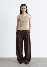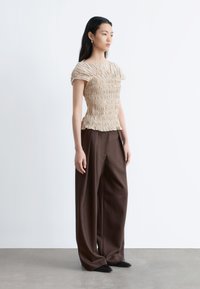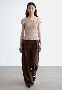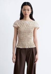 & OTHER STORIES SMOCKED BOATNECK TOP - T-shirt con stampa - beige