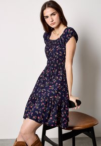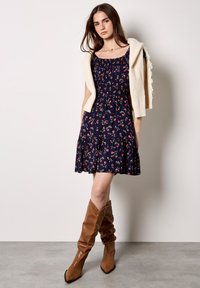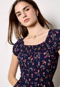 SMOCKED FLORAL PRINT MINI - Vestito casual - navy