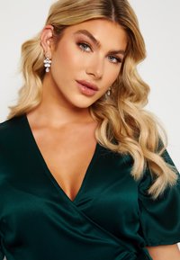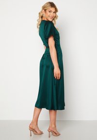 BUTTERFLY SLEEVE WRAP SATIN MIDI DRESS - Vestito elegante - dark green