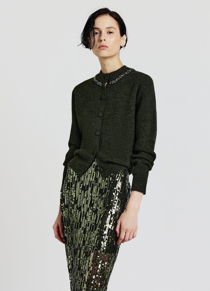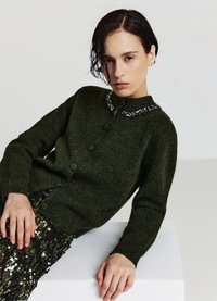 COLLO STRASS - Cardigan - verde militare