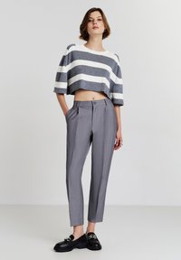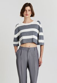 CROP A RIGHE - T-shirt con stampa - var grigio scuro melange