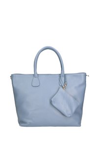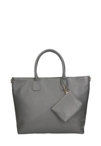 Borsa a tracolla in pelle marrone con finitura testurizzata, due manici e una pochette con zip più piccola attaccata. Design minimalista, senza loghi visibili.