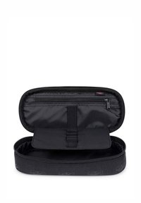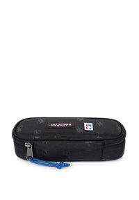 Astuccio Eastpak, rettangolare, tessuto nero con logo NBA e patch Eastpak, chiusura con zip, superficie testurizzata, cursore della zip blu.
