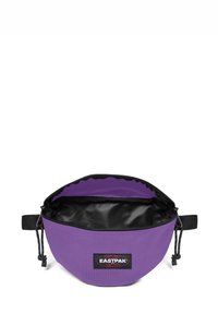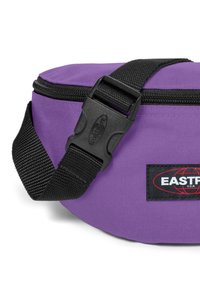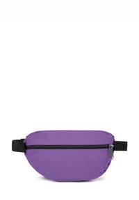 Marsupio Eastpak viola in tessuto resistente, con chiusura a zip nera e toppa con logo sul davanti. Design compatto e curvo.
