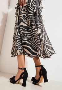 WIDE FIT - BOW DETAIL MID BLOCK HEEL SUMMER SANDALS . - Sandali con tacco - black faux suede