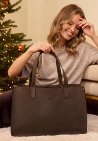 Lo scomparto interno extra large di Agatha ha spazio sufficiente per il tuo laptop da 15 pollici, borraccia, portafoglio, quaderni, chiavi e astuccio per penne. Inoltre, la grande apertura offre molto spazio per gli acquisti spontanei. I manici in vera pelle completano il design, mentre la possibilità di personalizzare Agatha con una dedica la rende un regalo particolarmente personale. Questa borsa non solo soddisfa le tue esigenze quotidiane, ma sostiene anche un settore impegnato nella protezione ambientale e nelle pratiche di lavoro eque. Un must-have per tutti coloro che vogliono combinare funzionalità e stile.