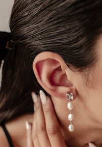 FLOWER AND PEARL DROP - Orecchini - silver coloured