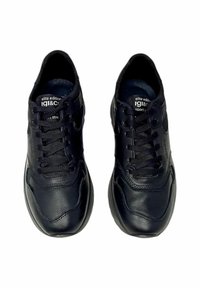 Sneakers in pelle nera con tomaia testurizzata, design con lacci, suole in gomma e dettagli sovrapposti. Leggeri e resistenti.