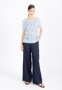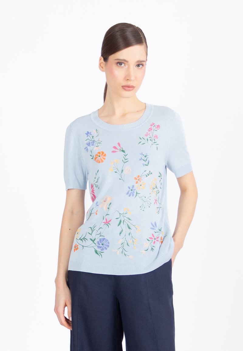 WITH EMBROIDERY FLORAL PATTERN - T-shirt con stampa - sky