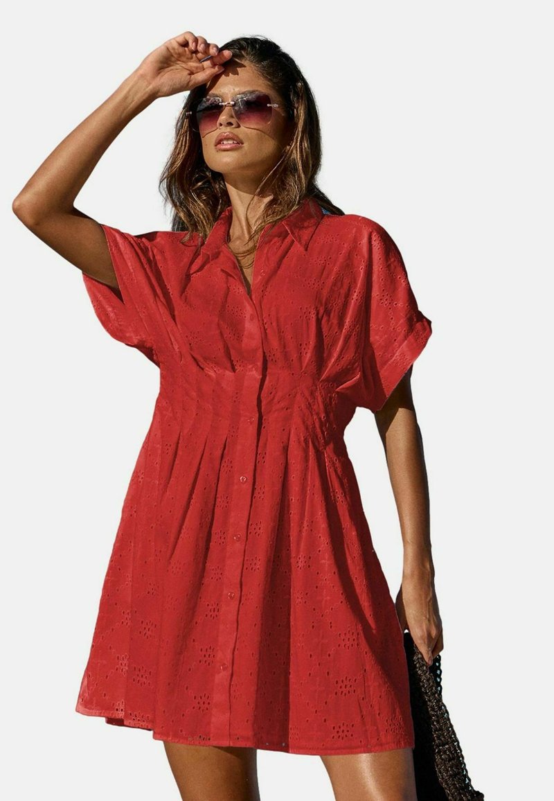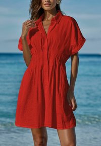 REGULAR FIT - SHORT SLEEVE BRODERIE MINI - Abito a camicia - red