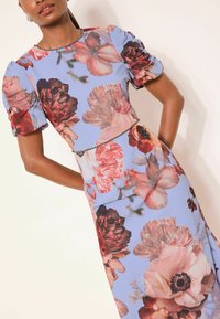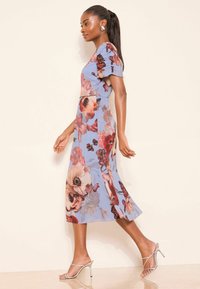 REGULAR FIT-BEAD TRIM FLORAL PRINT AND FLARE MIDI - Vestito casual - blue