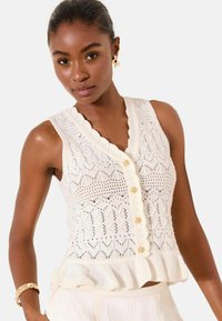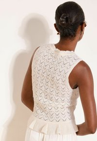 REGULAR FIT - V-NECK STITCHY FRILL - Smanicato - ivory white