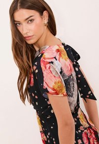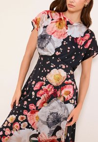 REGULAR FIT - FLORAL SHORT SLEEVE UNDERBUST MIDI - Vestito casual - black bisoux print