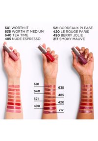 L'Oréal Paris Hyaluron Tint, un siero colorante per labbra per 12 ore di colore vibrante. Arricchito con acido ialuronico, fornisce l'80% di idratazione istantanea per una finitura liscia e opaca.