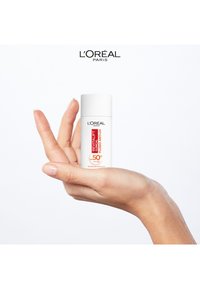 Fluido Anti-UV SPF 50+ con Vitamina C* antiossidante. La sua formula fluida ultra-leggera per un uso quotidiano protegge, previene e migliora visibilmente i primi segni dell’invecchiamento causati dai raggi UV: macchie, rughe e discromie. Tutte le mattine applicare uniformemente come idratante o dopo la skincare routine e prima del makeup. Non ostruisce i pori e facilita l’applicazione del make-up. È possibile applicarlo anche sulle palpebre e sul contorno occhi.