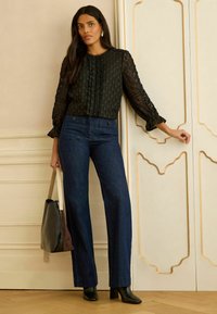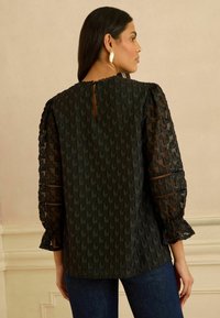 REGULAR FIT - 3D HEART 3/4 SLEEVE CREW NECK - Camicetta - black