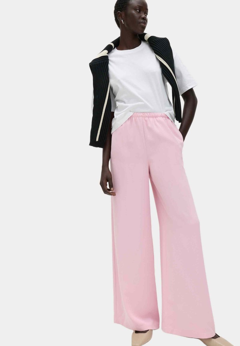 CREPE ELASTICATED WAIST WIDE LEG TROUSERS - Pantaloni - pink
