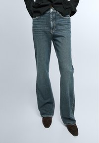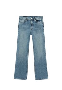 Vita alta. Modello a cinque tasche. Jeans bootcut fit: taglio slim, aderente in vita e sulle cosce e ampio sull’orlo. Chiusura anteriore con cerniera e bottone.