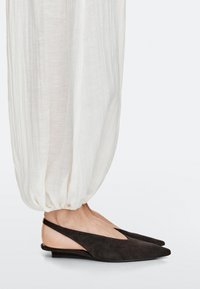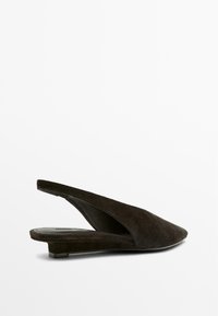 Tacco: 2 cm. Slingback. Realizzato in pelle bovina scamosciata. Fodera interna e soletta in pelle. Fascetta posteriore con elemento elastico.