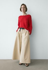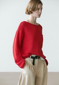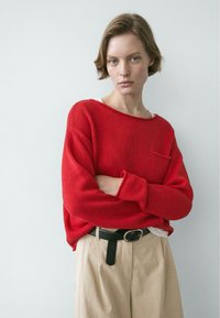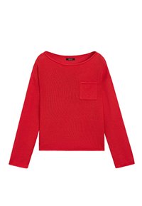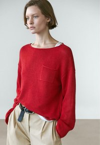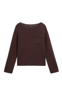 Una tasca a toppa all’altezza del petto. Sollo a barchetta. Pullover realizzato in tessuto di cotone e lino. Maniche lunghe.