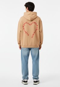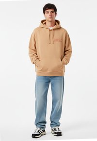 FLOWERS EMBROIDERY HEAYVWEIGHT UNISEX - Felpa con cappuccio - washed beige
