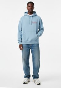 FLOWERS EMBROIDERY HEAYVWEIGHT UNISEX - Felpa con cappuccio - washed blue