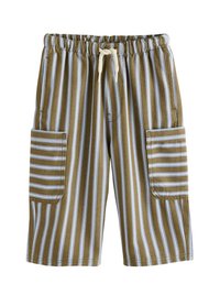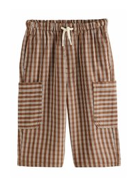 Pantaloni cargo color sabbia con un motivo tessuto a trama; dotati di due tasche laterali, fascia elasticizzata in vita e cordino per una vestibilità regolabile.