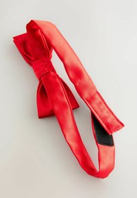 Papillon rosso in tessuto liscio, caratterizzato da un colore solido con una finitura testurizzata. Cinturino regolabile per una vestibilità sicura.