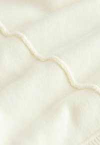 Polo a maniche corte cropped in avorio chiaro. Realizzata in tessuto morbido con scollo a V e sottili dettagli di cuciture sulle spalle.