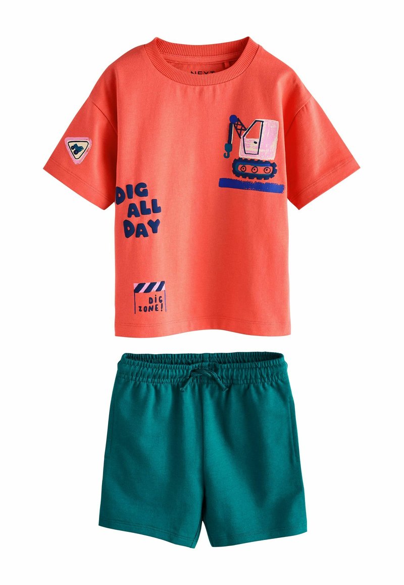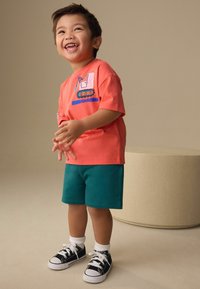 REGULAR FIT - SHORT SLEEVE BACK PRINT T-SHIRT AND SHORTS SET . - Pantaloni sportivi - coral pink digger