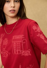 SHORT SLEEVE CREW NECK - T-shirt con stampa - red paris pink embroidered