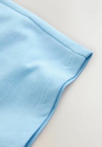 Pantaloncini azzurri realizzati in un tessuto morbido, con elastico in vita, coulisse e due tasche laterali.