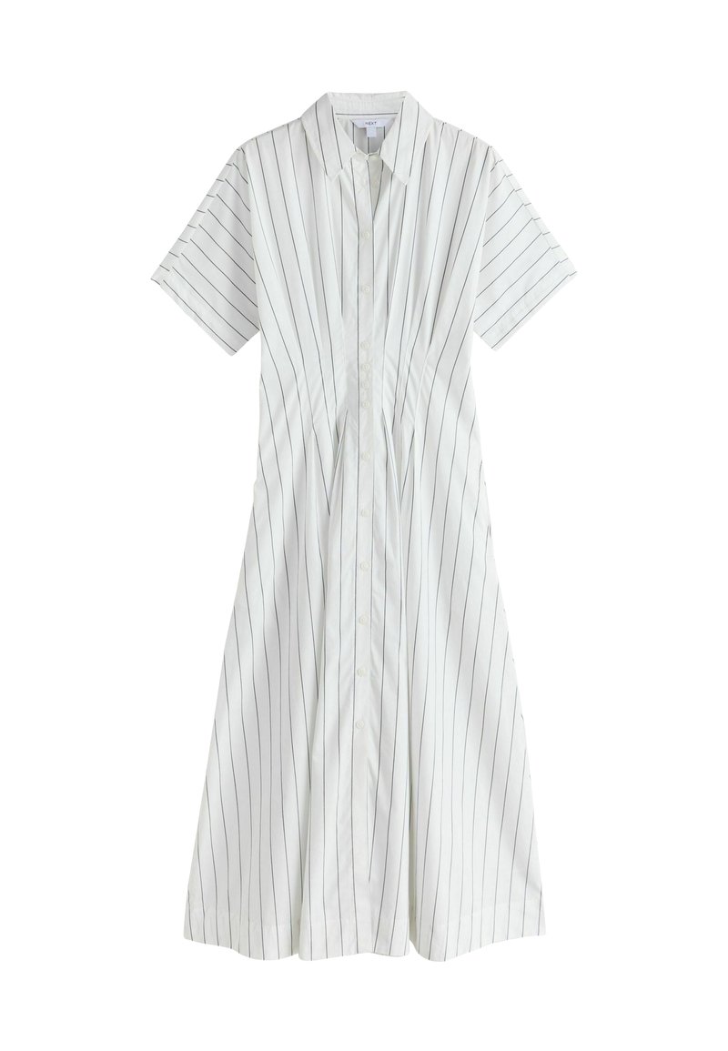 TALL FIT - SHORT SLEEVE CINCHED WAIST MIDI - Abito a camicia - monochrome white with black stripe