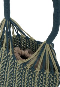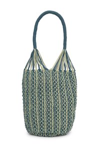 Borsa a mano in macramè con motivo testurizzato bicolore, seduce per il suo look estivo e grafico. Il manico tubolare regolabile assicura una comoda vestibilità a spalla e si adatta a tutte le silhouette, mentre la chiusura interna con cordoncino mette al sicuro il contenuto con discrezione. Pratica per l'uso quotidiano, è dotata di una tasca interna funzionale e di un logo in rilievo che firma il modello con eleganza.