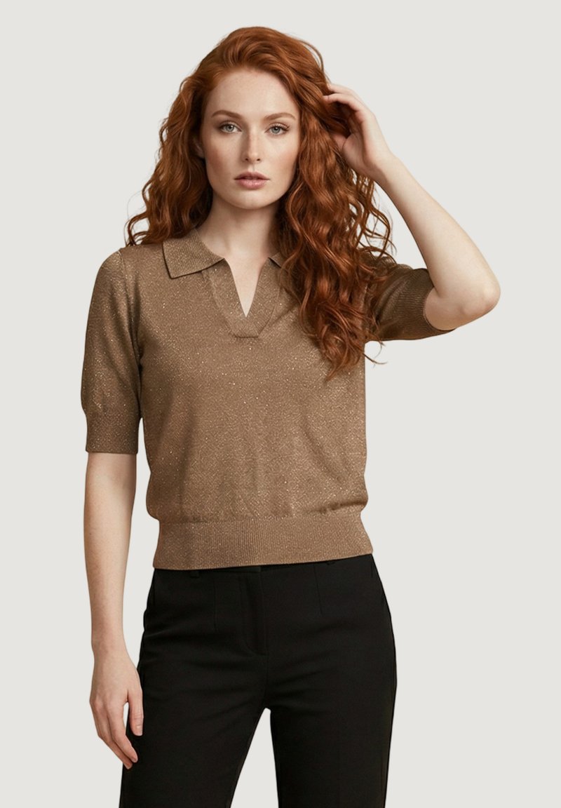 SS SEQUINS V-NECK CC - Polo - dark-beige