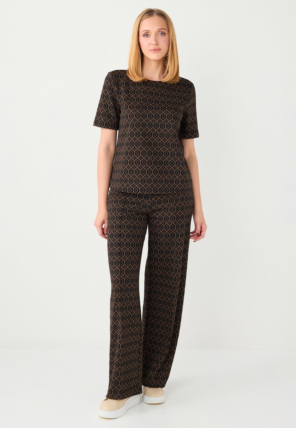 SHORT SLEEVE BIKE NECK GEOMETRIC PATTERN - T-shirt con stampa - brown
