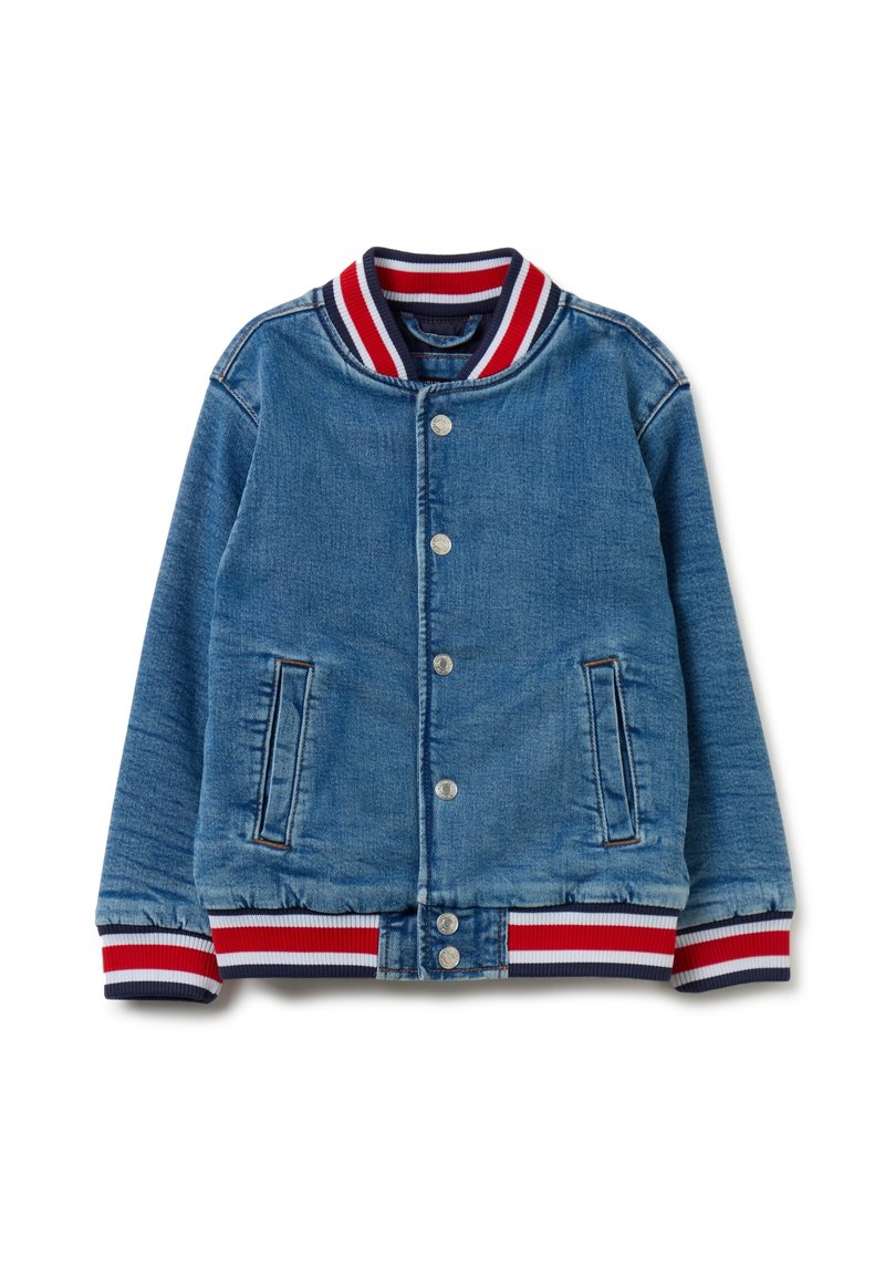 WITH STRIPED TRIMS - Giubbotto Bomber - medium wash