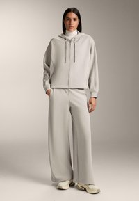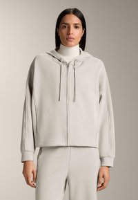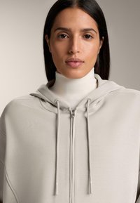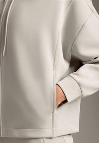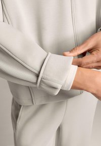 BRUSHED HOODED WITH RIB DETAILS - Felpa con zip - mottled beige