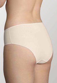Mutandine hipster in cotone beige con una texture liscia, aperture per le gambe a taglio alto e bordi senza cuciture per il massimo comfort. Adatte all'uso quotidiano.