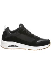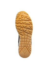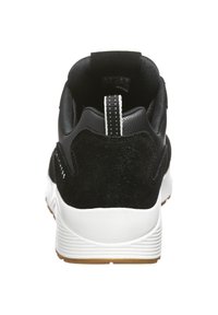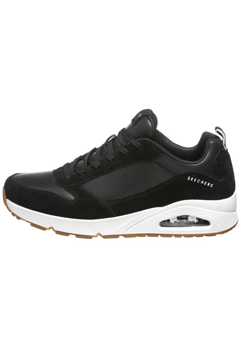 Sneaker nera con un mix di materiali lisci e testurizzati. Presenta una suola intermedia bianca, suola in gomma naturale e dettagli con ammortizzazione ad aria.