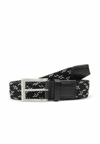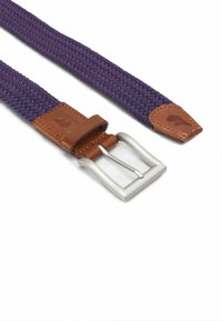 Persona con pantaloni neri e cintura intrecciata viola, camicia rosa infilata e giacca verde, mani nelle tasche.