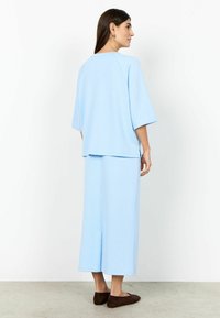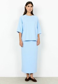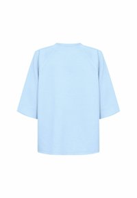 Felpa oversize azzurro chiaro con maniche raglan 3/4 e scollo rotondo, caratterizzata da una texture morbida e liscia e una vestibilità rilassata.