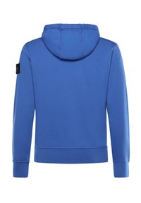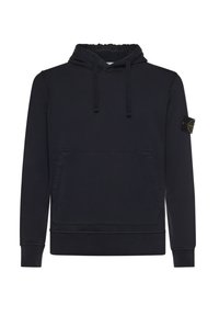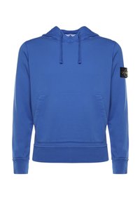 Felpa con cappuccio blu a maniche lunghe con tasca a marsupio frontale e cappuccio regolabile con coulisse, caratterizzata da una patch logo nera sulla parte superiore sinistra della manica.
