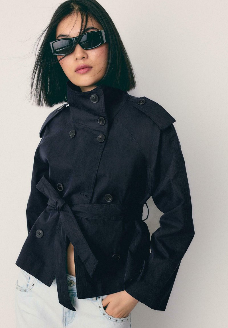 HIGH NECK WITH BELT - Giacca leggera - mottled dark blue