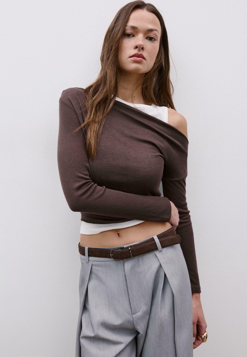 ASYMMETRIC DOUBLE - Maglietta a manica lunga - dark brown