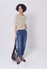 KURZARM - RUNDHALS - FEINSTRICK - T-shirt basic - beige
