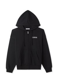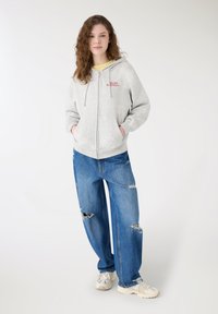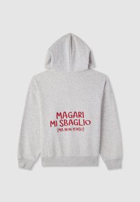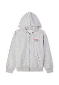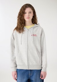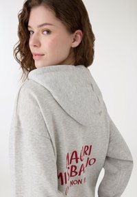 CON CAPPUCCIO E SCRITTA - Felpa con zip - grigio chiaro melange