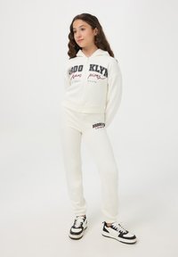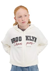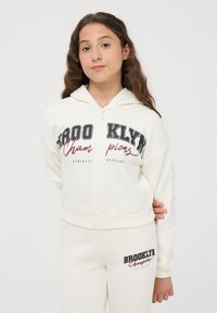 PESANTE CON CAPPUCCIO E STAMPA COLLEGE - Felpa con zip - bianco lana