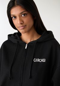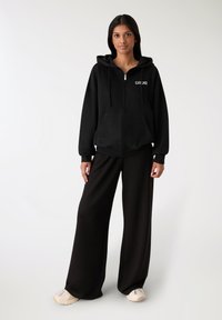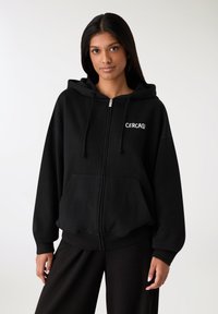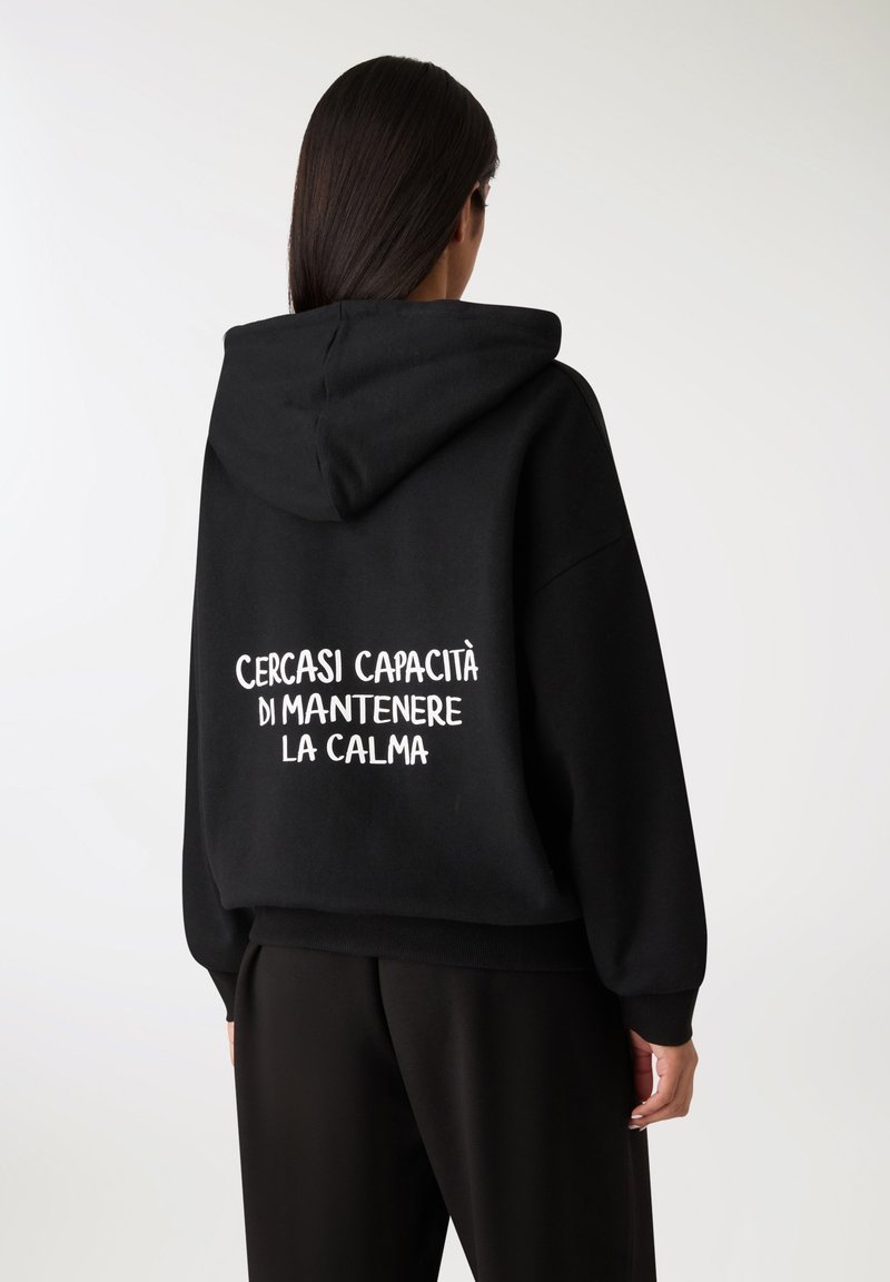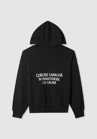CON CAPPUCCIO E SCRITTA - Felpa con zip - nero