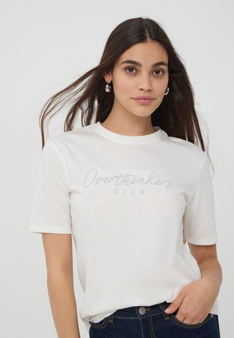 CON SCRITTA RICAMATA IN LUREX - T-shirt basic - bianco lana